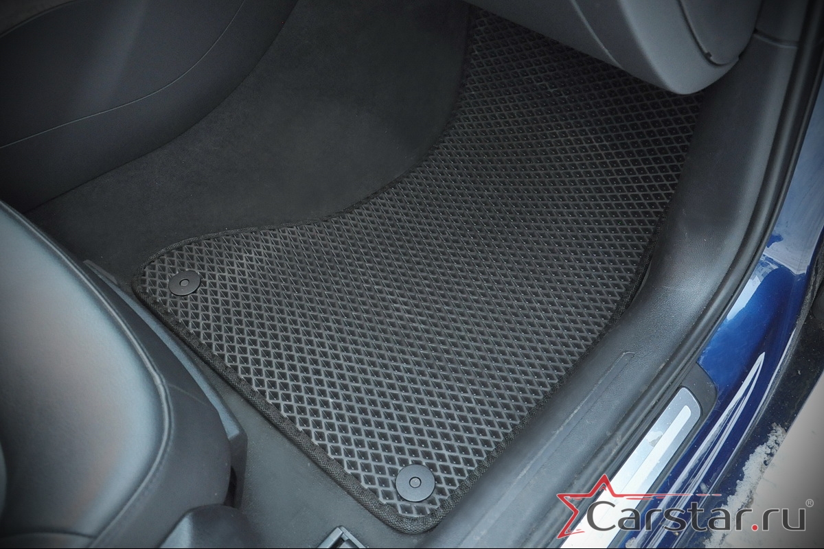 Коврики EVA надёжно крепятся с помощью оригинальных систем фиксации. Благодаря клипсам и липучке коврики защищены от смещений, что обеспечивает комфорт и безопасность вождения. Максимальное удобство также достигается точными, улучшенными лекалами для каждого автомобиля.