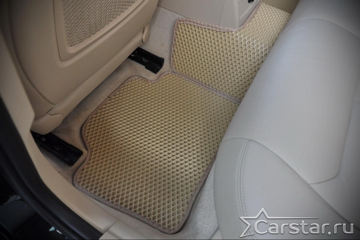 Толщина ковриков EVA составляет 10-12 мм. Глубина ячеек 7-8 мм. Такая толщина ковриков позволяет им служить довольно долго, не протираясь до 3 лет. А благодаря такой глубине ячеек коврик EVA площадью 1 кв.м. способен захватить около 3,5 л жидкости, сохраняя в чистоте вашу обувь и обивку салона.