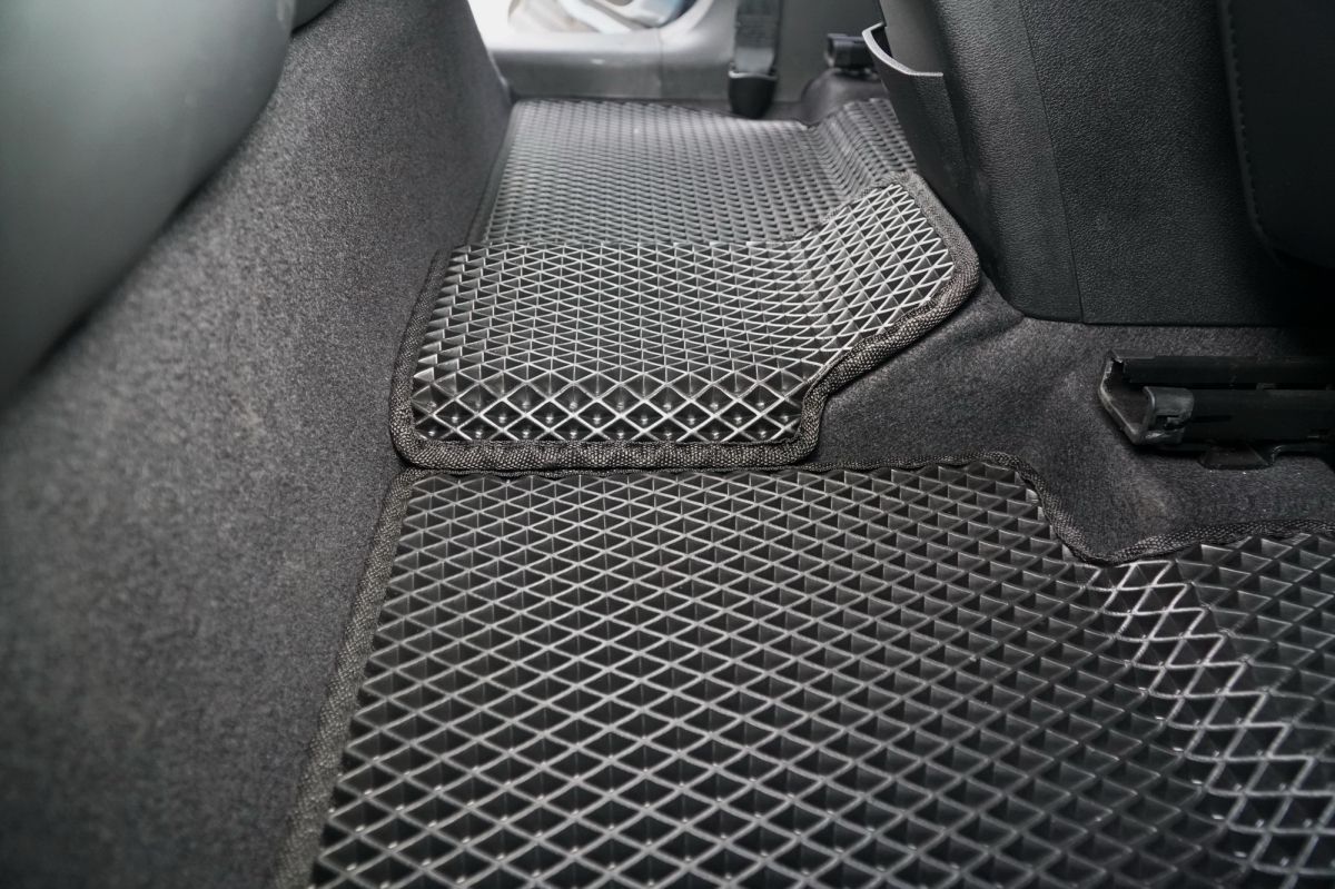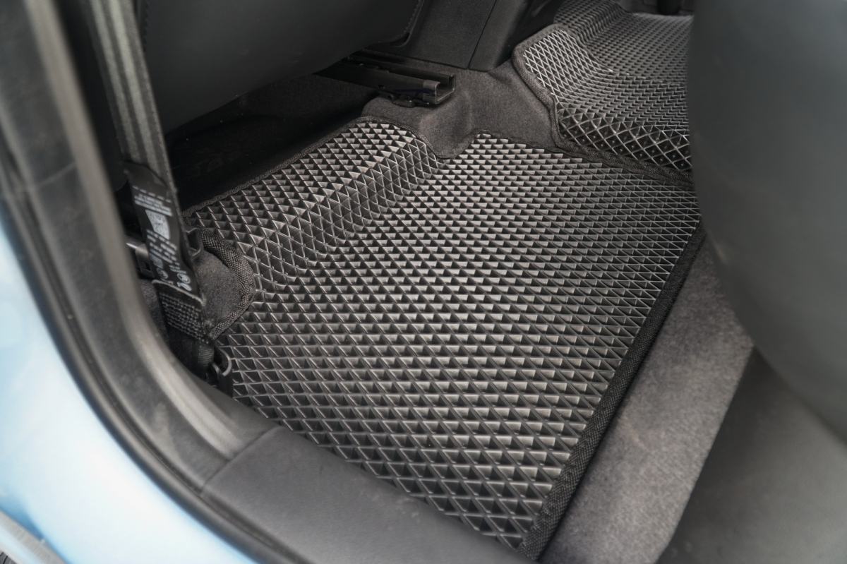 Толщина ковриков EVA составляет 10-12 мм. Глубина ячеек 7-8 мм. Такая толщина ковриков позволяет им служить довольно долго, не протираясь до 3 лет. А благодаря такой глубине ячеек коврик EVA площадью 1 кв.м. способен захватить около 3,5 л жидкости, сохраняя в чистоте вашу обувь и обивку салона.