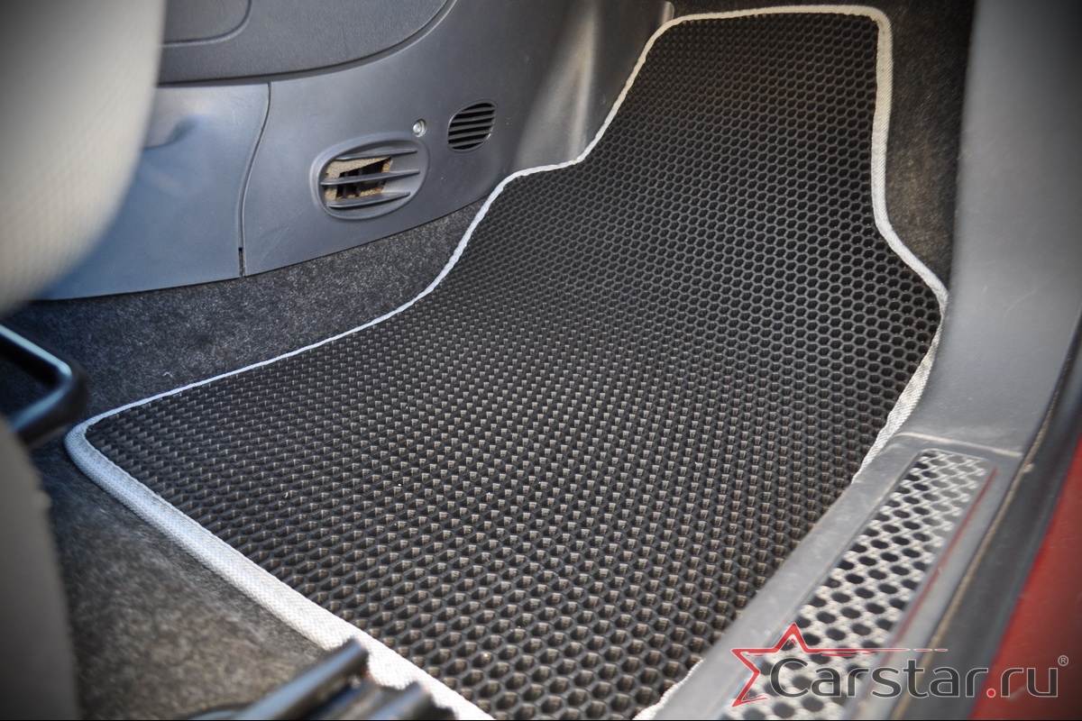 Автоковрики EVA производятся из инновационного экологически чистого материала, обладающего высочайшей износостойкостью, устойчивостью к экстремальным температурам (от +40 С до -40 С) и агрессивным химреагентам. Они в 4 раза легче обычных резиновых аналогов, а чрезвычайно плотная структура обеспечивает им безупречную гидро- и шумоизоляцию!