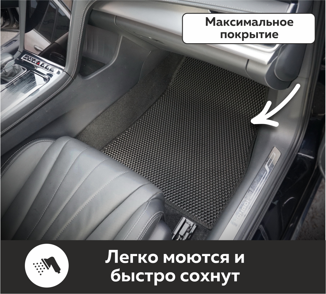 Автомобильные коврики EVA Hongqi H5 II (2022->) – это долговечные, удобные и универсальные аксессуары, которые помогут надежно защитить салон и багажник вашего авто от пыли, грязи и влаги в любое время года.