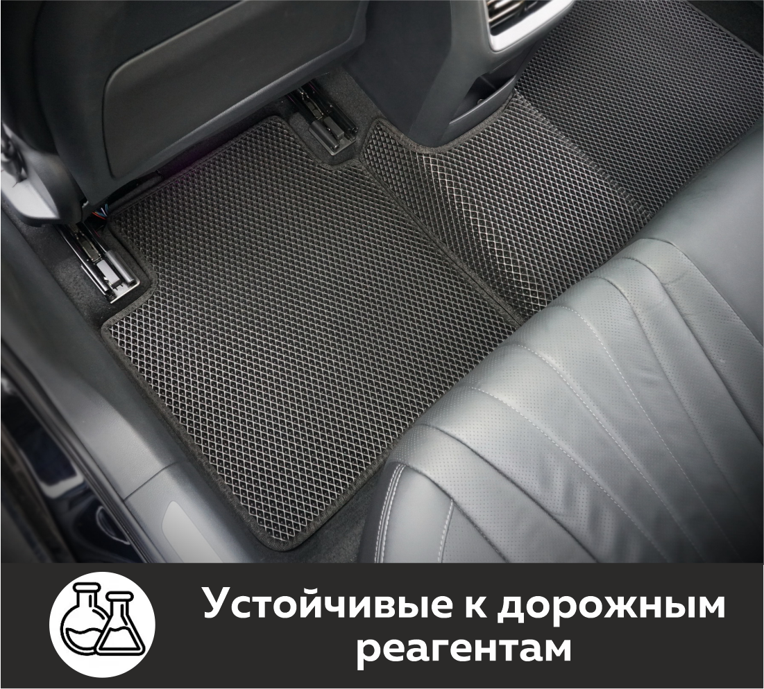 Коврики EVA всесезонные. Их можно использовать зимой, так как они не трескаются на морозе и остаются пластичными до -50 °С. А также летом, так как они не выделяют запаха на жаре до +50 °С. Зимой коврики спокойно выдерживают контакт с дорожными реагентами. Материал абсолютно непромокаемый. Ячеистая структура коврика эффективно собирает снег, грязь, песок, пыль круглый год.