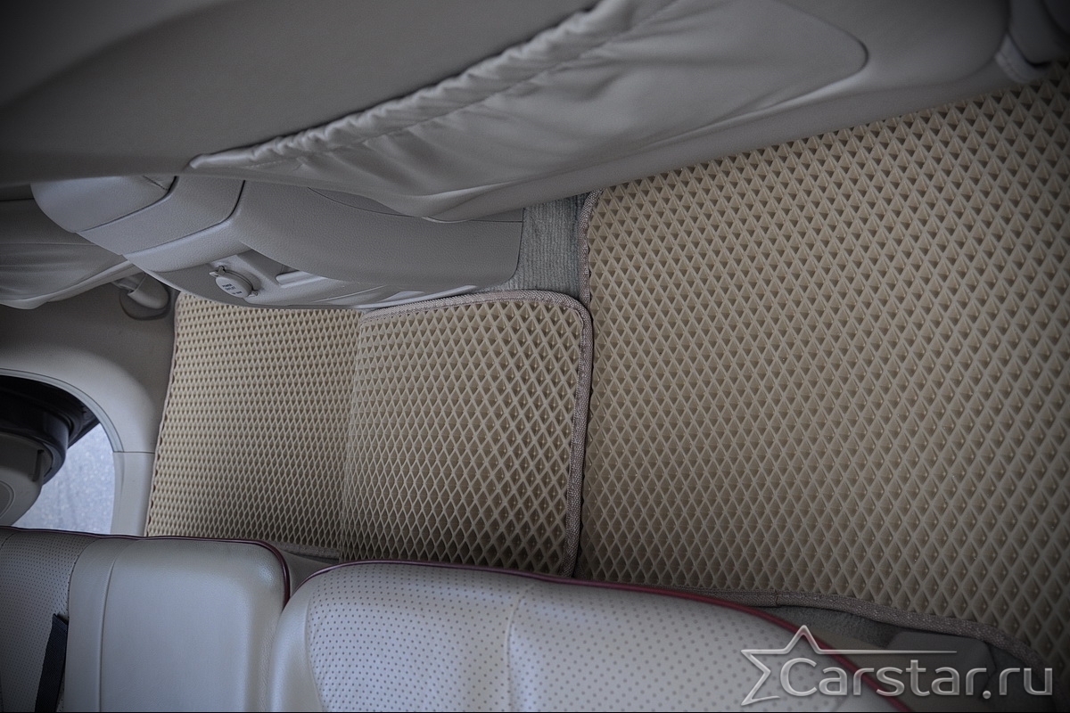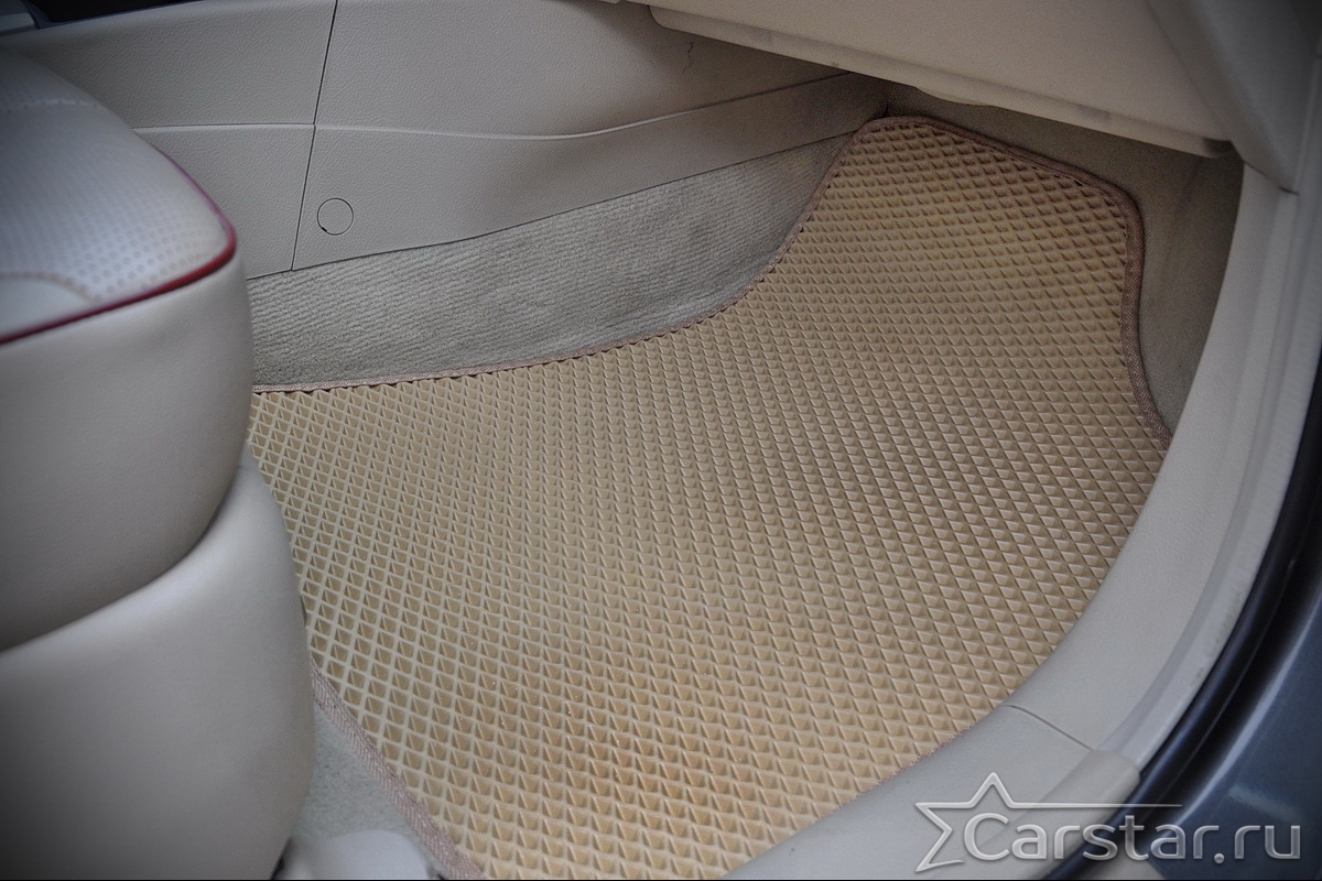 Толщина ковриков EVA составляет 10-12 мм. Глубина ячеек 7-8 мм. Такая толщина ковриков позволяет им служить довольно долго, не протираясь до 3 лет. А благодаря такой глубине ячеек коврик EVA площадью 1 кв.м. способен захватить около 3,5 л жидкости, сохраняя в чистоте вашу обувь и обивку салона.