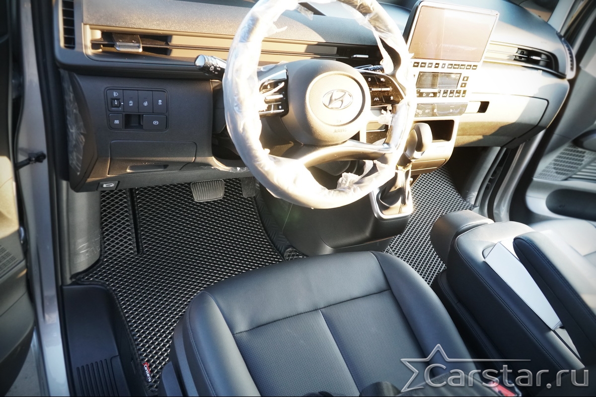 Автомобильные коврики EVA Hyundai Staria 11 мест (2021->) – это долговечные, удобные и универсальные аксессуары, которые помогут надежно защитить салон и багажник вашего авто от пыли, грязи и влаги в любое время года.