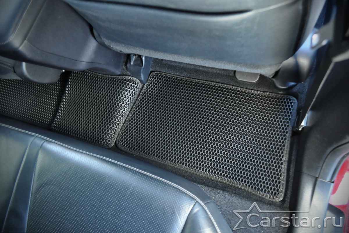 Толщина ковриков EVA составляет 10-12 мм. Глубина ячеек 7-8 мм. Такая толщина ковриков позволяет им служить довольно долго, не протираясь до 3 лет. А благодаря такой глубине ячеек коврик EVA площадью 1 кв.м. способен захватить около 3,5 л жидкости, сохраняя в чистоте вашу обувь и обивку салона.