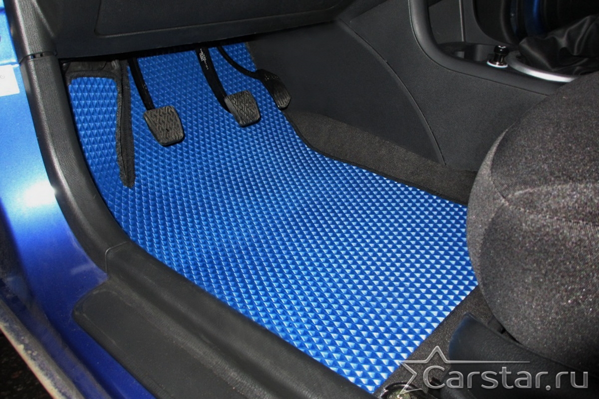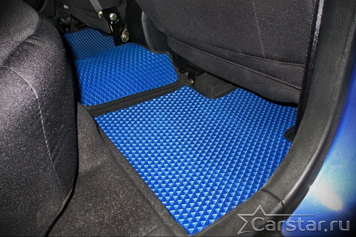 Автомобильные коврики EVA прекрасно подходят для всех существующих марок и моделей авто, здесь вы сможете заказать оптимальный аксессуар любого возможного цвета. По размерам они больше, чем стандартные резиновые коврики, поэтому покрывают максимальную площадь пола в салоне. А двойная система креплений (клипсы и липучки) позволяет надежно зафиксировать коврики в нужном месте.