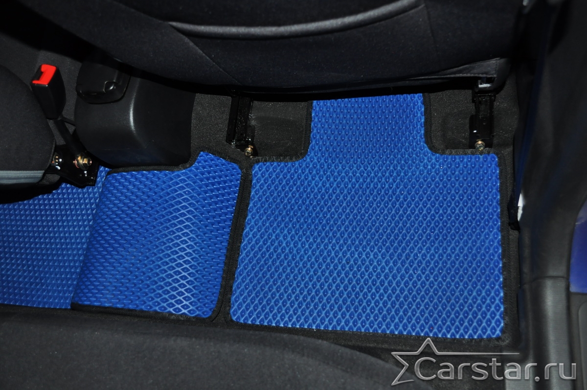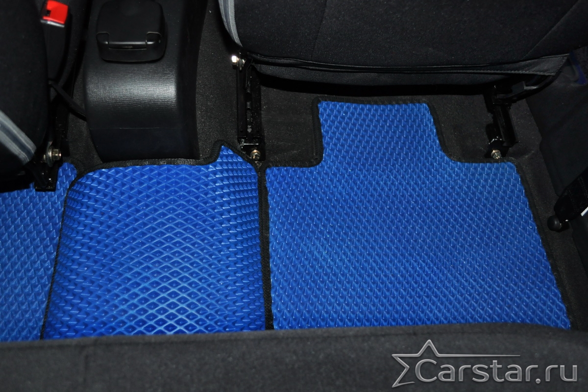 Толщина ковриков EVA составляет 10-12 мм. Глубина ячеек 7-8 мм. Такая толщина ковриков позволяет им служить довольно долго, не протираясь до 3 лет. А благодаря такой глубине ячеек коврик EVA площадью 1 кв.м. способен захватить около 3,5 л жидкости, сохраняя в чистоте вашу обувь и обивку салона.