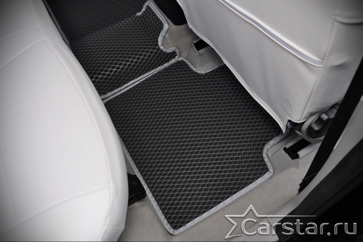 Автомобильные коврики EVA прекрасно подходят для всех существующих марок и моделей авто, здесь вы сможете заказать оптимальный аксессуар любого возможного цвета. По размерам они больше, чем стандартные резиновые коврики, поэтому покрывают максимальную площадь пола в салоне. А двойная система креплений (клипсы и липучки) позволяет надежно зафиксировать коврики в нужном месте.
