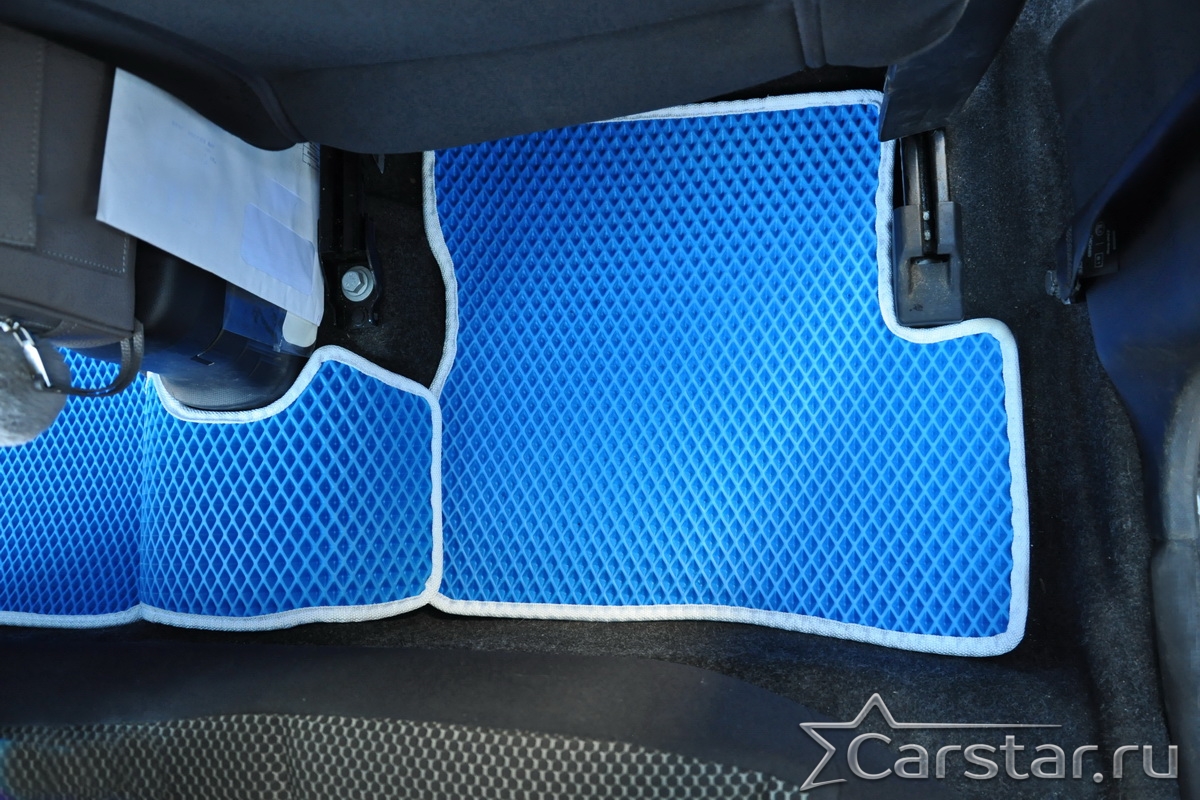 Толщина ковриков EVA составляет 10-12 мм. Глубина ячеек 7-8 мм. Такая толщина ковриков позволяет им служить довольно долго, не протираясь до 3 лет. А благодаря такой глубине ячеек коврик EVA площадью 1 кв.м. способен захватить около 3,5 л жидкости, сохраняя в чистоте вашу обувь и обивку салона.