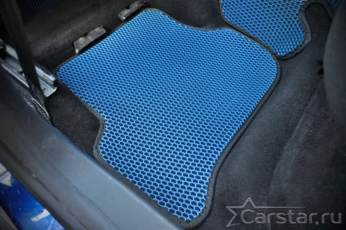 Толщина ковриков EVA составляет 10-12 мм. Глубина ячеек 7-8 мм. Такая толщина ковриков позволяет им служить довольно долго, не протираясь до 3 лет. А благодаря такой глубине ячеек коврик EVA площадью 1 кв.м. способен захватить около 3,5 л жидкости, сохраняя в чистоте вашу обувь и обивку салона.