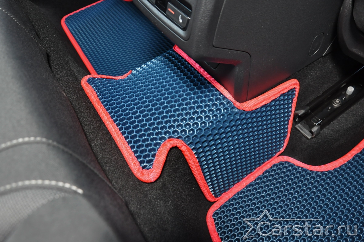 Толщина ковриков EVA составляет 10-12 мм. Глубина ячеек 7-8 мм. Такая толщина ковриков позволяет им служить довольно долго, не протираясь до 3 лет. А благодаря такой глубине ячеек коврик EVA площадью 1 кв.м. способен захватить около 3,5 л жидкости, сохраняя в чистоте вашу обувь и обивку салона.