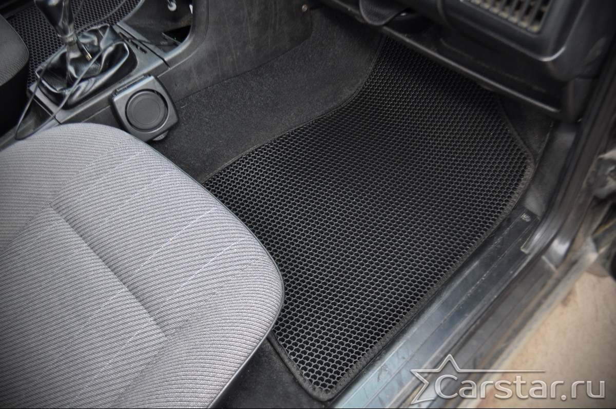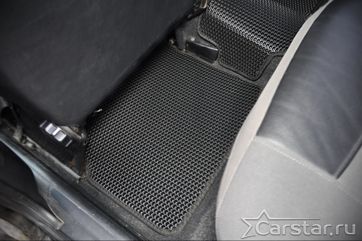 Толщина ковриков EVA составляет 10-12 мм. Глубина ячеек 7-8 мм. Такая толщина ковриков позволяет им служить довольно долго, не протираясь до 3 лет. А благодаря такой глубине ячеек коврик EVA площадью 1 кв.м. способен захватить около 3,5 л жидкости, сохраняя в чистоте вашу обувь и обивку салона.