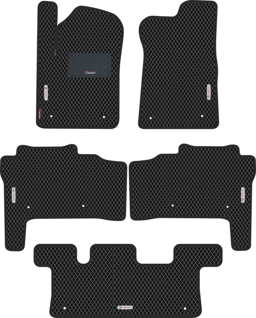 Двухслойные коврики EVA для Nissan Patrol VI Y62 3 ряда (2010->) – это инновационные, долговечные, удобные аксессуары, которые помогут надежно защитить салон и багажник вашего авто от пыли, грязи и влаги в любое время года. Технология двойного слоя - новейшая уникальная разработка от компании Carstar.