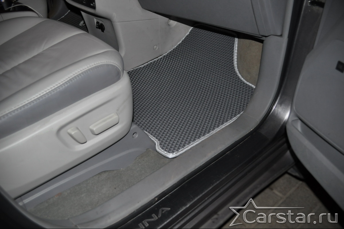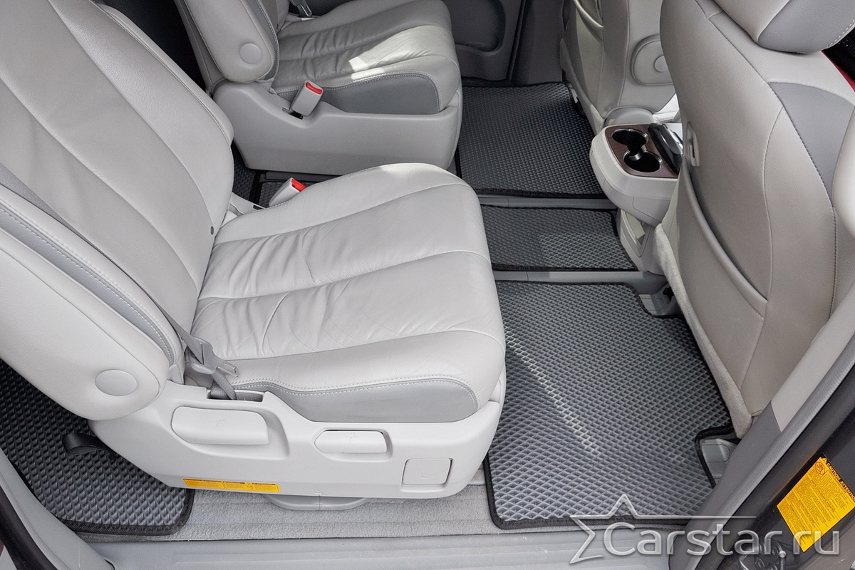 Двухслойные коврики EVA для Toyota Sienna III 6 мест (2010-2020) – это инновационные, долговечные, удобные аксессуары, которые помогут надежно защитить салон и багажник вашего авто от пыли, грязи и влаги в любое время года. Технология двойного слоя - новейшая уникальная разработка от компании Carstar.