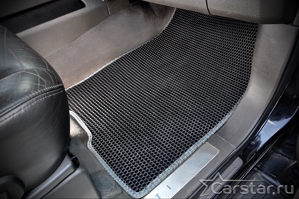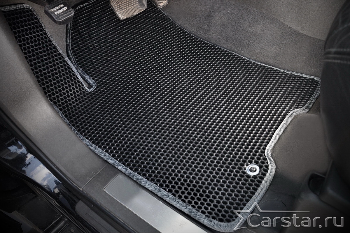 Текстильные коврики надёжно крепятся с помощью оригинальных систем фиксации. Обратная сторона имеет противоскользящее покрытие, что обеспечивает защиту от смещений и безопасность. Максимальное удобство достигается точными лекалами.