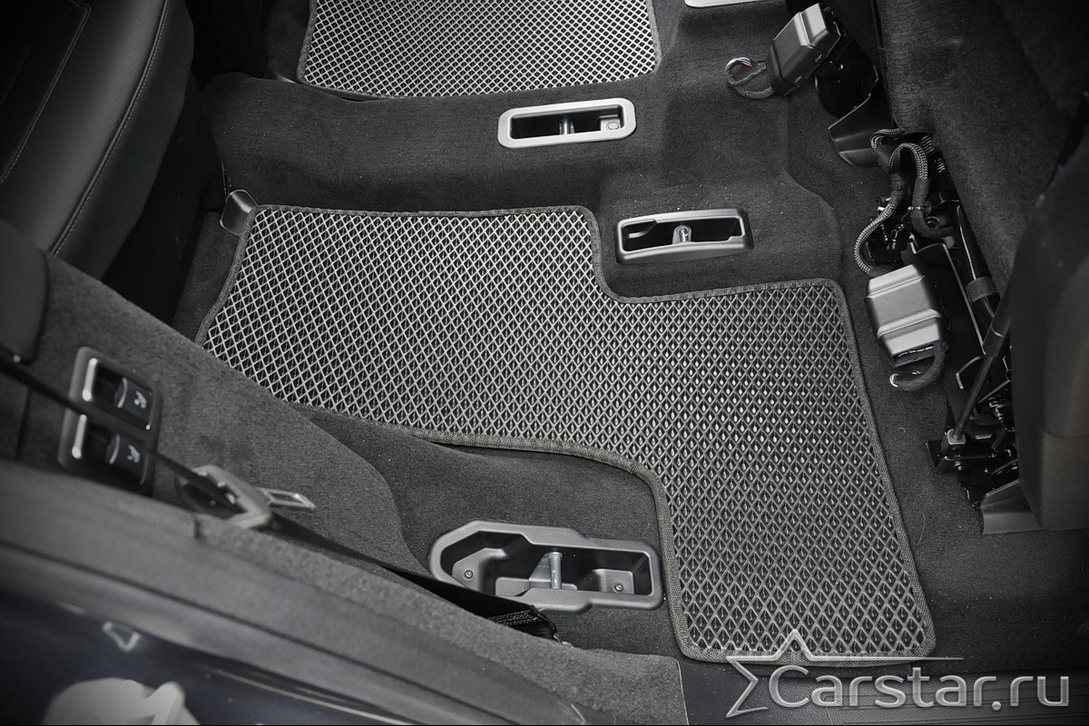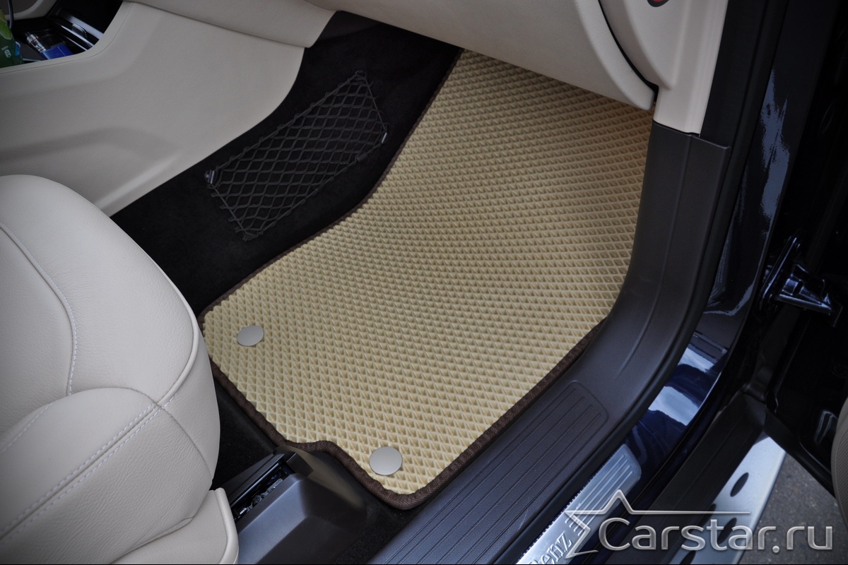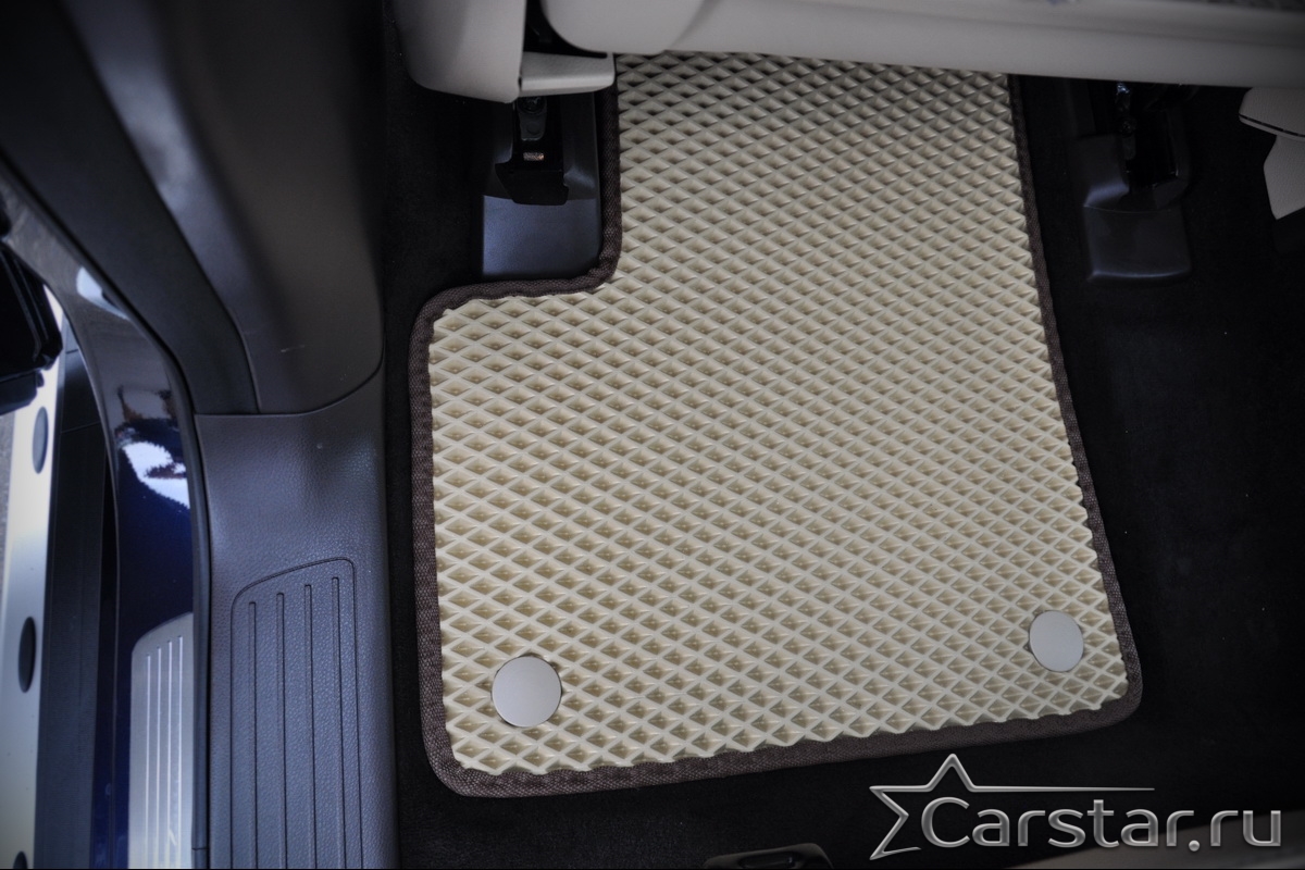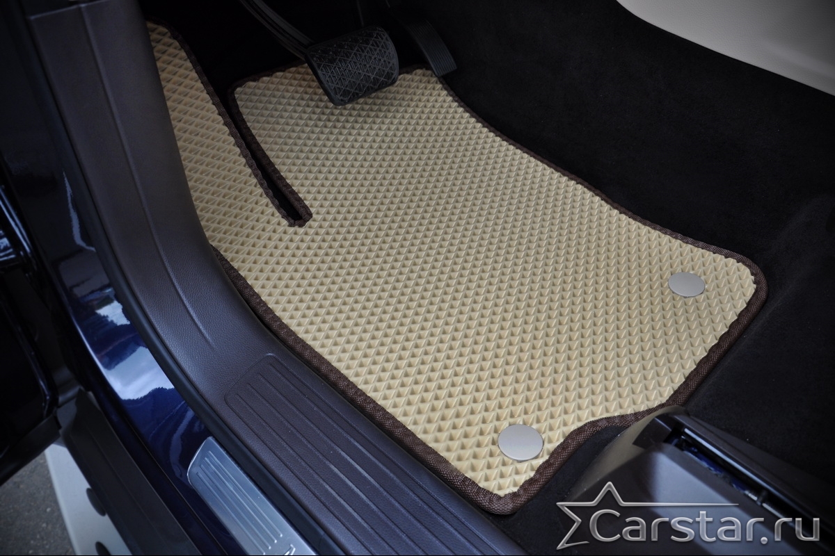 Текстильные коврики надёжно крепятся с помощью оригинальных систем фиксации. Обратная сторона имеет противоскользящее покрытие, что обеспечивает защиту от смещений и безопасность. Максимальное удобство достигается точными лекалами.