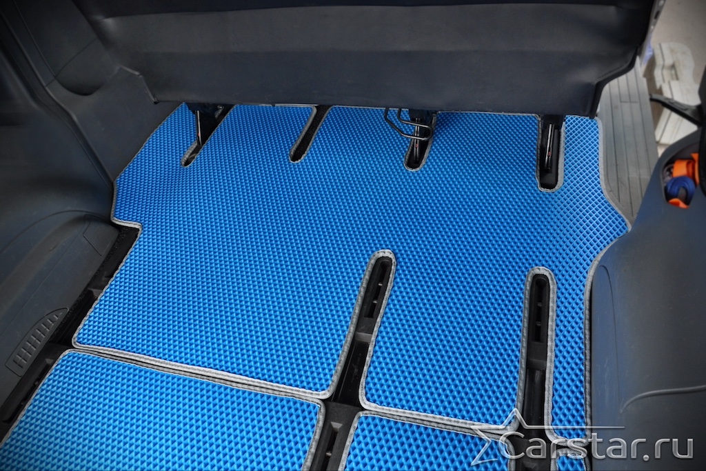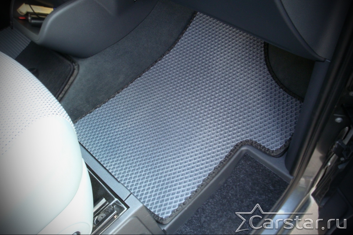 Текстильные коврики надёжно крепятся с помощью оригинальных систем фиксации. Обратная сторона имеет противоскользящее покрытие, что обеспечивает защиту от смещений и безопасность. Максимальное удобство достигается точными лекалами.