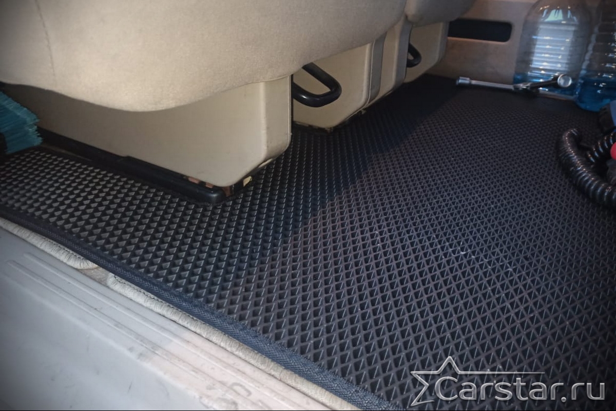 Нижняя часть ковра изготавливается из термопластичной резины с шипами 2-3 мм по всей поверхности, что предотвращает скольжение коврика по салону автомобиля.