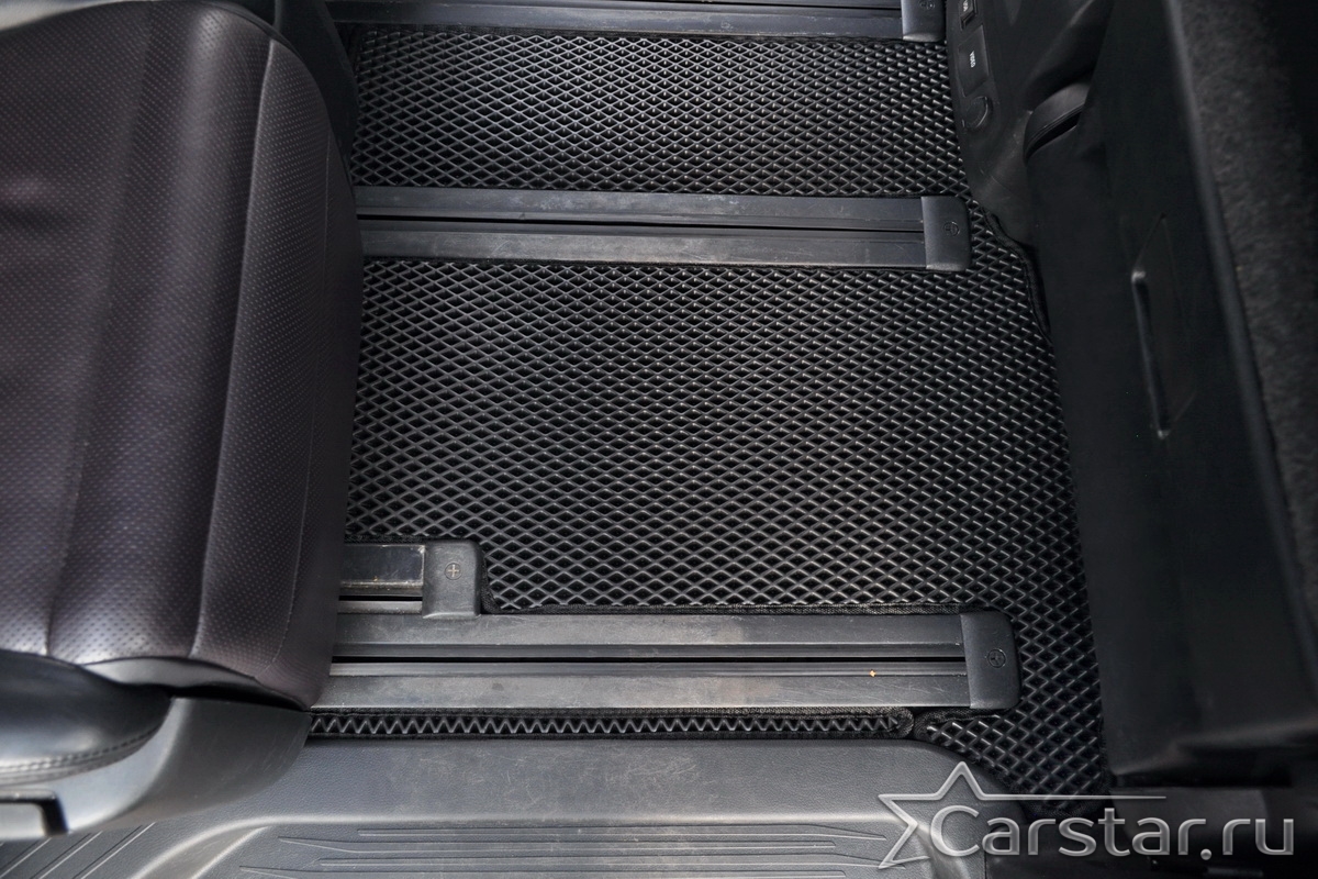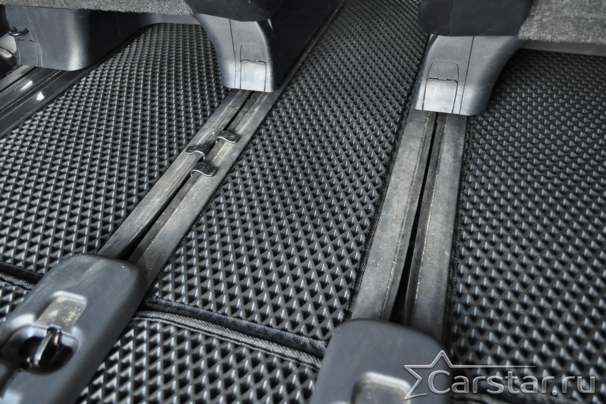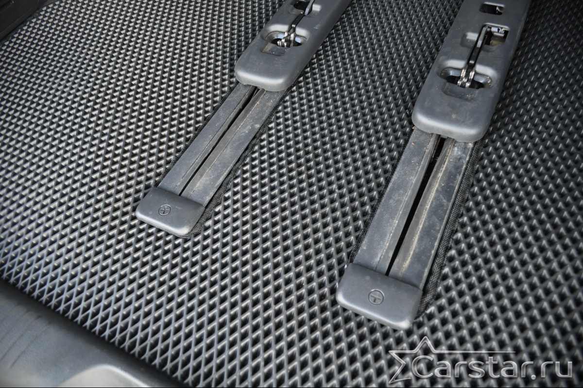 Текстильные коврики надёжно крепятся с помощью оригинальных систем фиксации. Обратная сторона имеет противоскользящее покрытие, что обеспечивает защиту от смещений и безопасность. Максимальное удобство достигается точными лекалами.